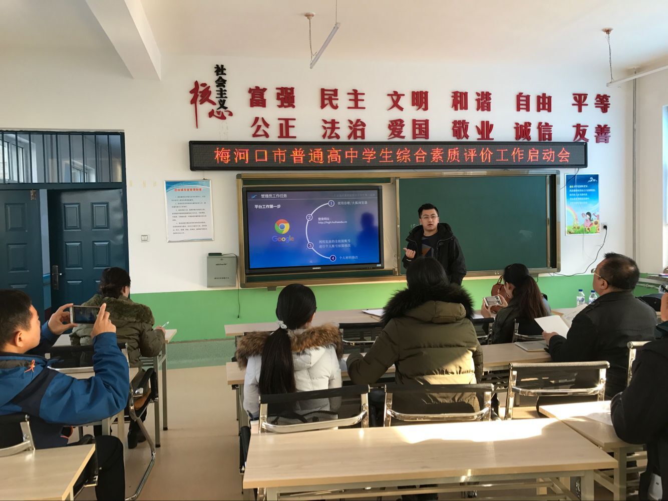 為落實吉林省教育廳《關(guān)于啟動吉林省普通高中學(xué)生綜合素質(zhì)評價工作軟件安裝和平臺測試的通知》(吉教基二[2017]26號)的文件精神,助力吉林省普通高中學(xué)生綜合素質(zhì)評價工作的順利開展,吉林省慧??萍夹畔⒂邢薰居?1月24日,派出實施人員參加梅河口市普通高中學(xué)生綜合素質(zhì)評價工作啟動會暨評價平臺使用培訓(xùn)會,對與會人員進(jìn)行了應(yīng)用培訓(xùn)與技術(shù)指導(dǎo)。