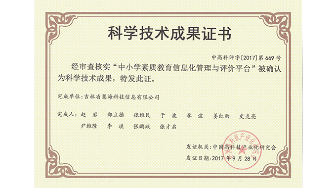 科學技術成果證書