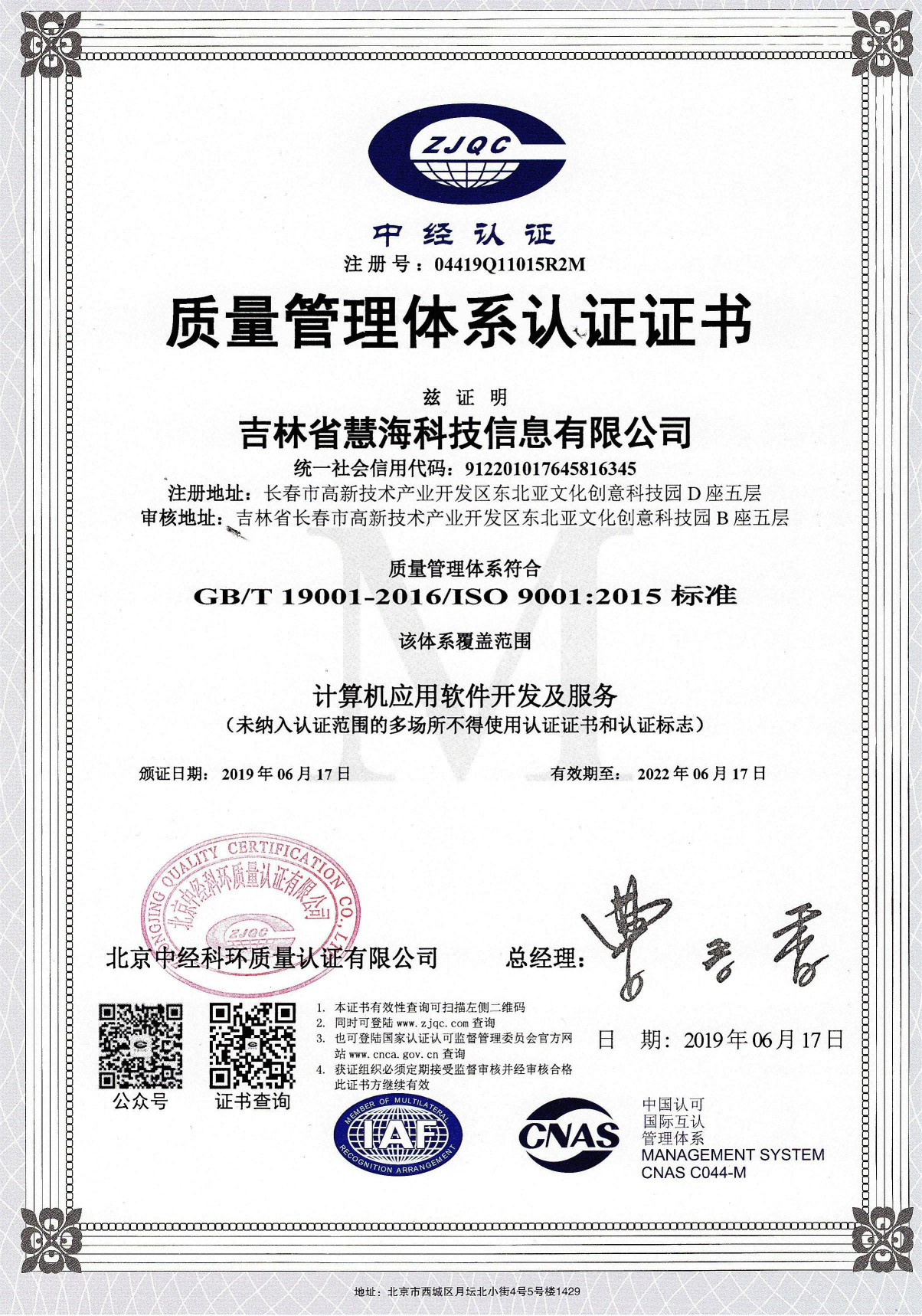 ISO9001質量管理體系認證證書